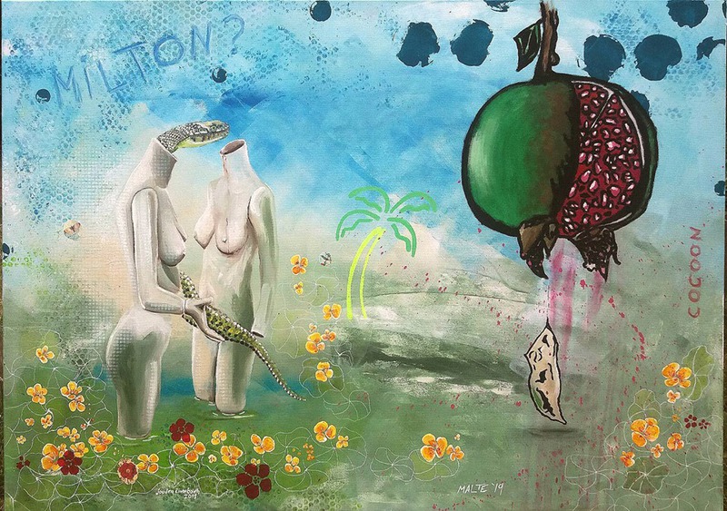 "Malte Sonnenfeld ist nicht nur eine schillernd-vielseitige Persönlichkeit und berufener Pop Art Künstler, sondern auch ein sehr sympathischer und liebenswerter Mensch. Der gebürtige Kölner bedient sich gekonnt der Bildersprache der Pop-Art und erzählt auf eine kritisch-poetische und subversiv-provokative Weise Geschichten und Schwänke aus dem Alltag, die er medial versetzt mit den Helden, Ikonen, und Chiffren des globalen Pluriversums der Medien. Dabei greift er in seinen immensen Erinnerungsfundus seiner persönlichen medial-visuellen „Sozialisierung“! Getragen sind seine Bildfindungen und visuell-thematischen Verdichtungen von Ironie, und Mutterwitz."